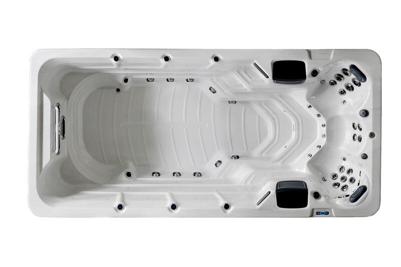 Avec une longueur de 5,50 mètres, ce spa de nage offre un large espace pour vos séances de nage à contre courant et de détente.