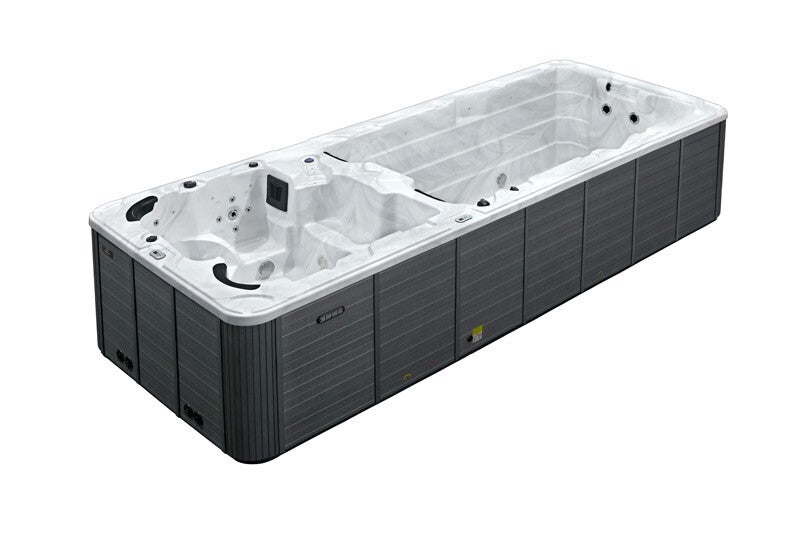 Grâce à sa pompe bi-vitesse et son grand bassin, la partie nage permet une pratique fluide et agréable, tandis que l’espace relaxation propose des places assises et allongées, équipées de 24 jets hydro-massants, idéals pour une récupération musculaire optimale.